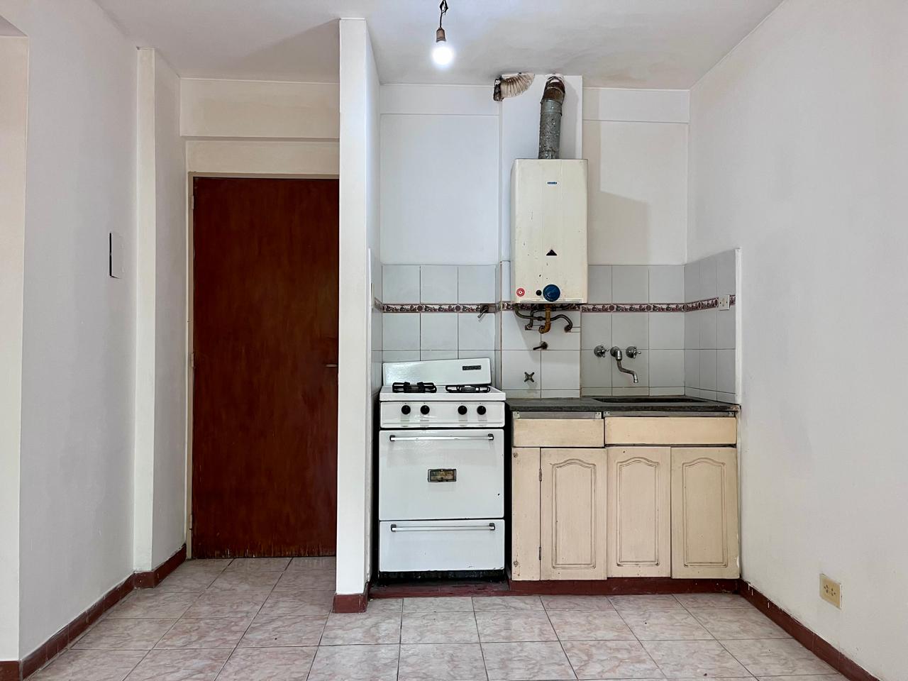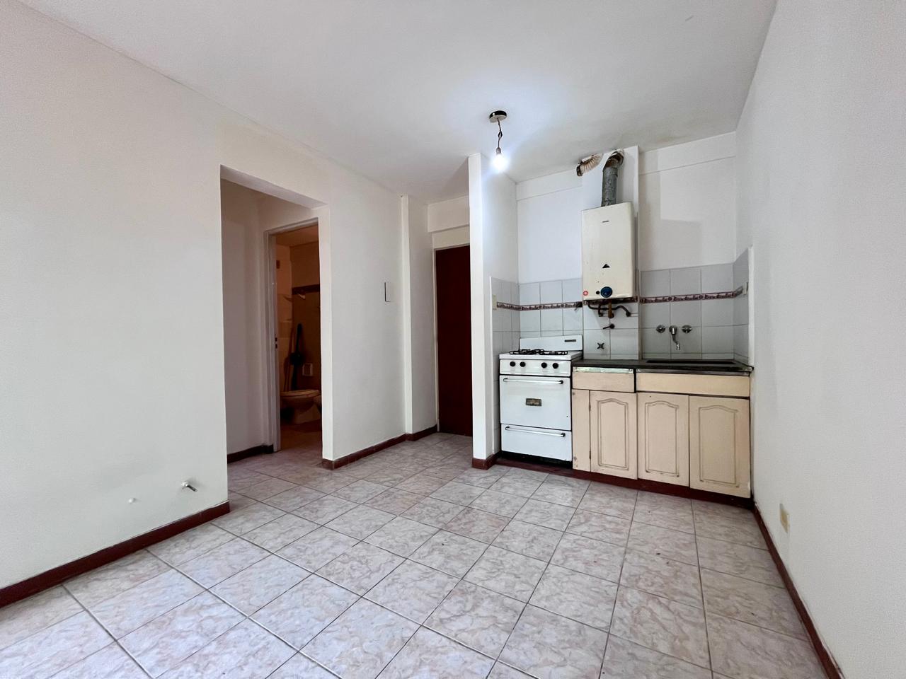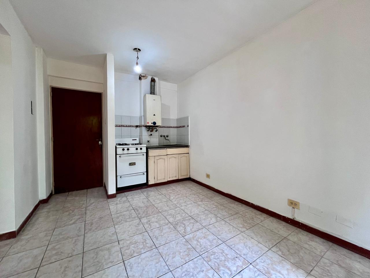 Departamento al frente con balcón ubicado en segundo piso, compuesto con cocina integrada, baño completo y dormitorio con placard.