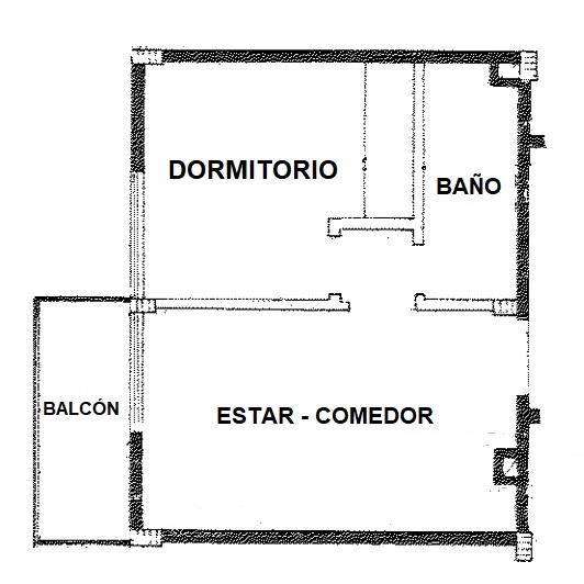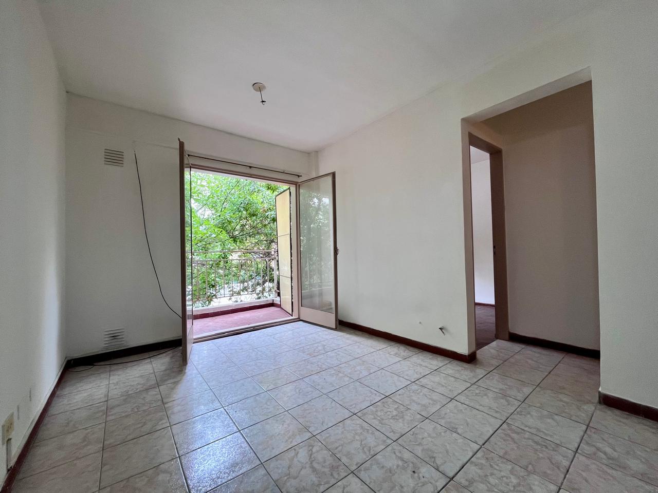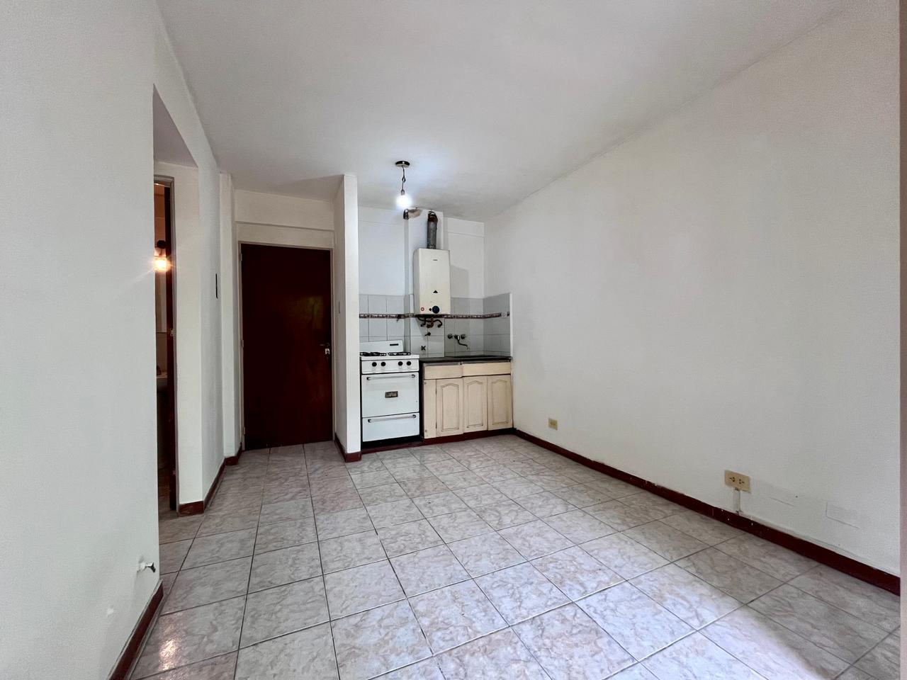 Departamento al frente con balcón ubicado en segundo piso, compuesto con cocina integrada, baño completo y dormitorio con placard.